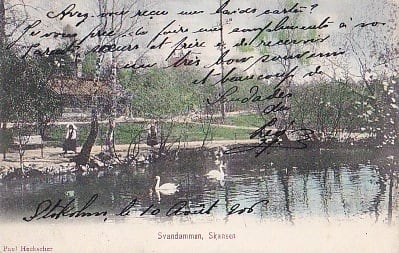 古絵葉書エンタイア 湖に白鳥/スウェーデン(1900年代初頭)