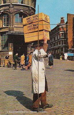 古絵葉書エンタイア 魚を運ぶ人(ロンドン)(年代不詳)