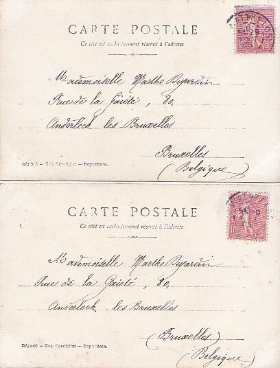 古絵葉書エンタイア 同じ女性2葉(1905年) 経年相応の保存状態 管理コード038