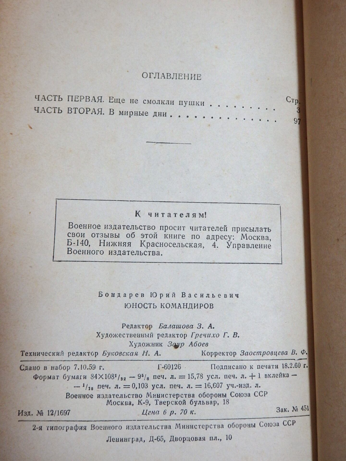 「Юность командиров」Юрий Бондарев