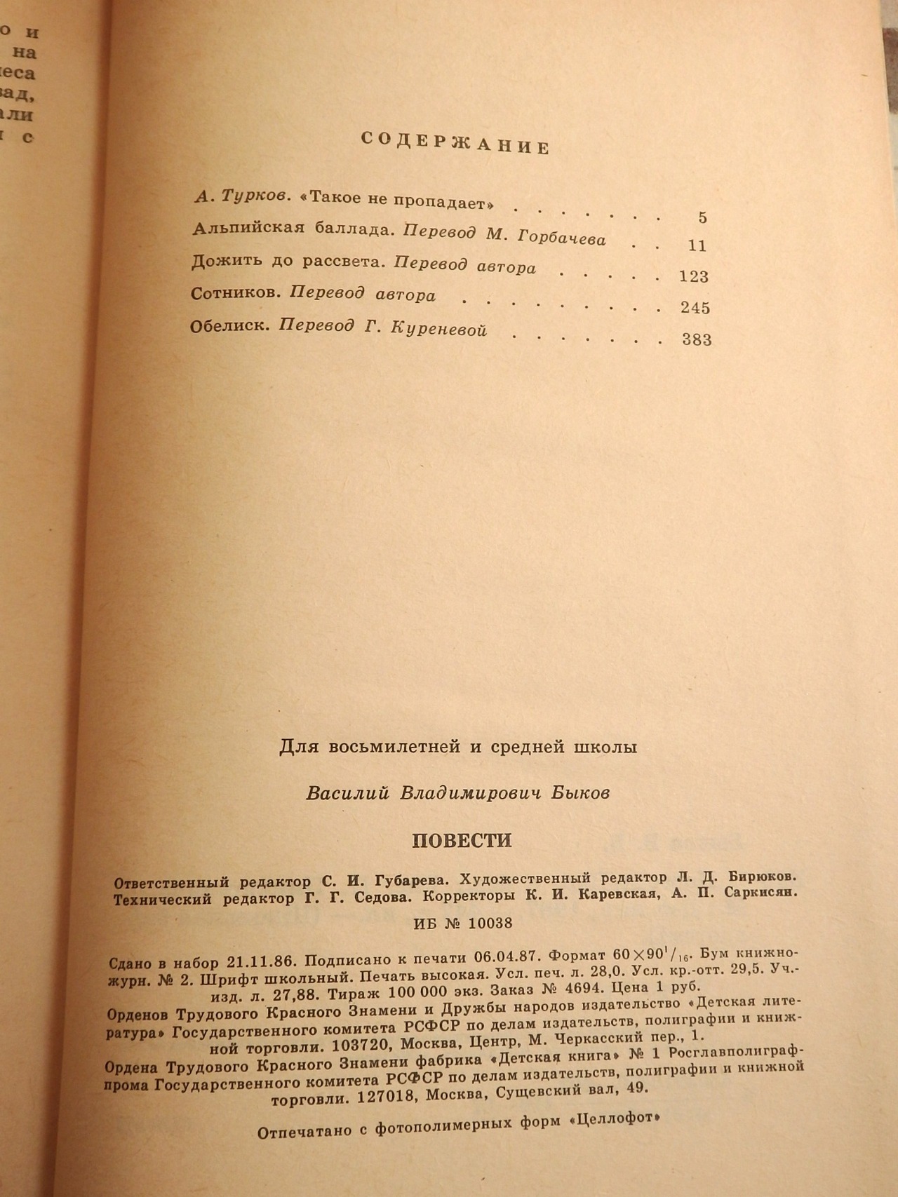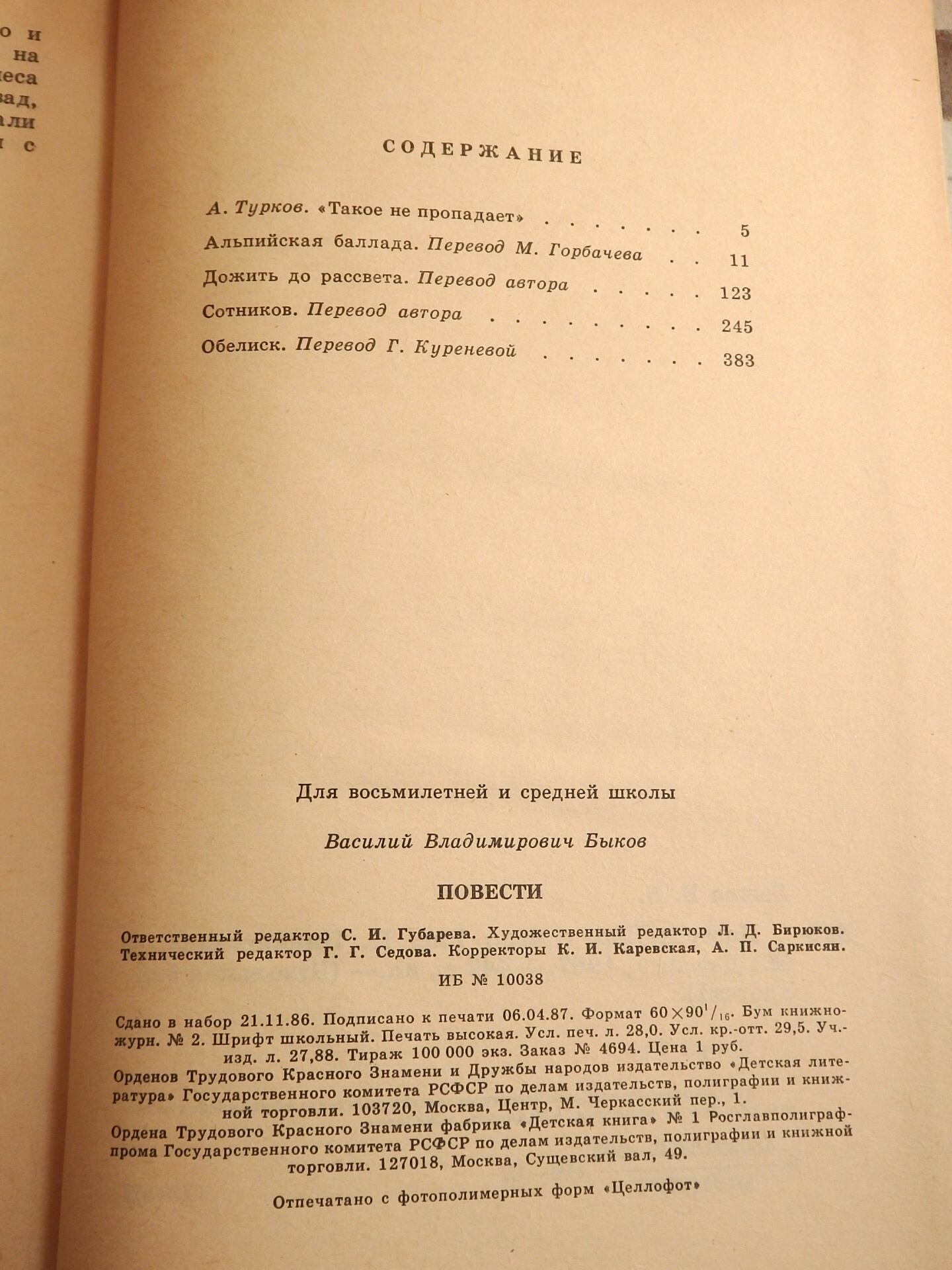 Василь Быков. Повести 1987年 ハードカバー 露語 ヤケ少痛