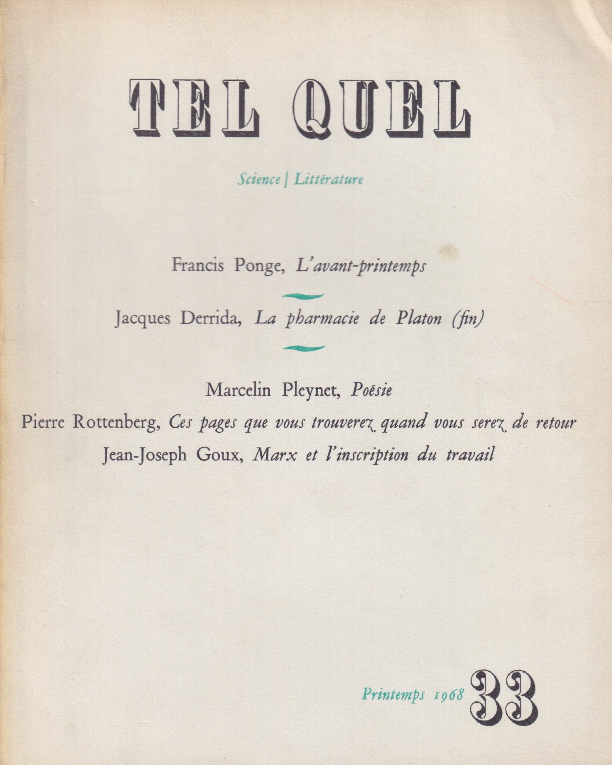 前衛文芸誌『TEL QUEL』第33号
