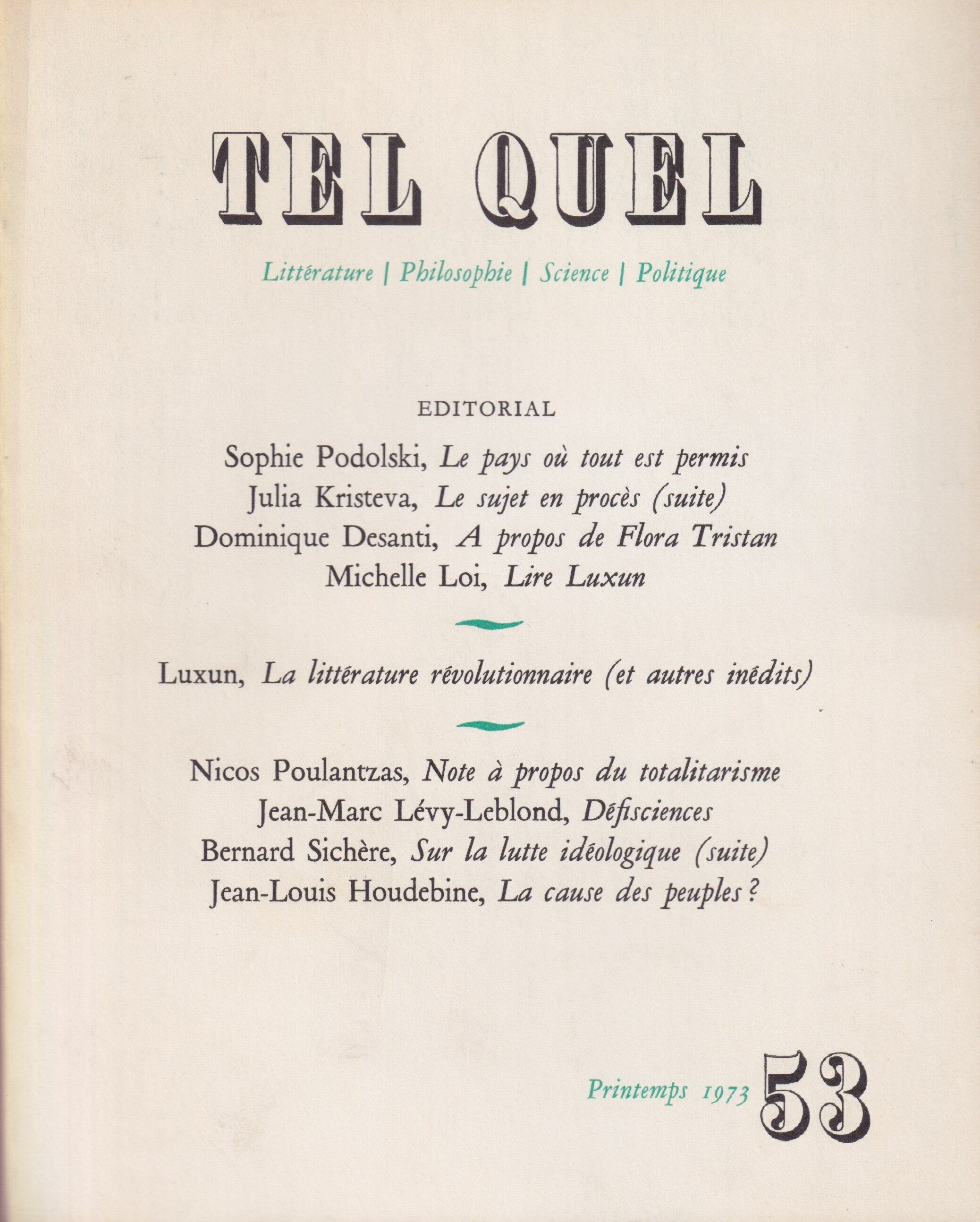 前衛文芸誌『TEL QUEL』第53号