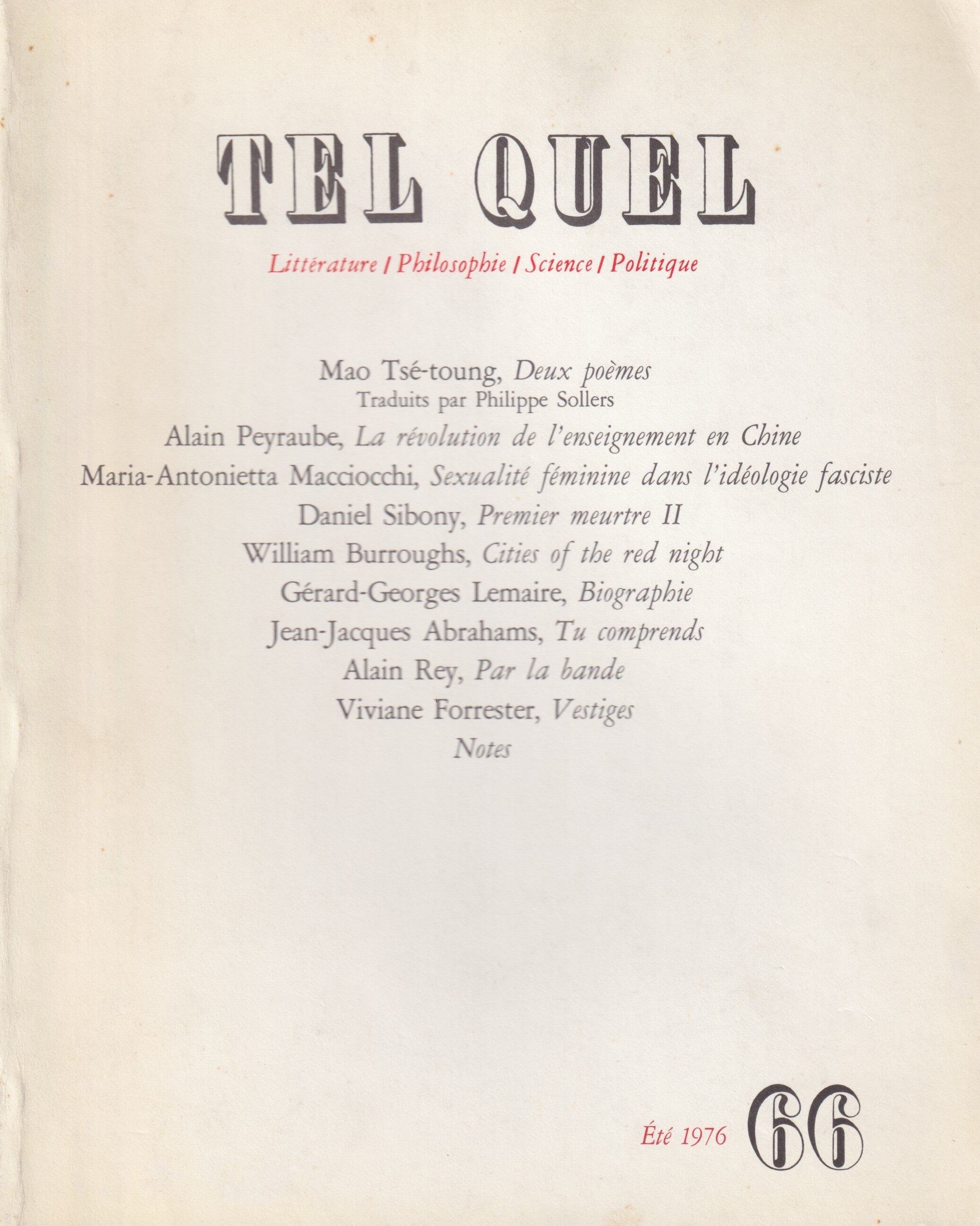 前衛文芸誌『TEL QUEL』第66号