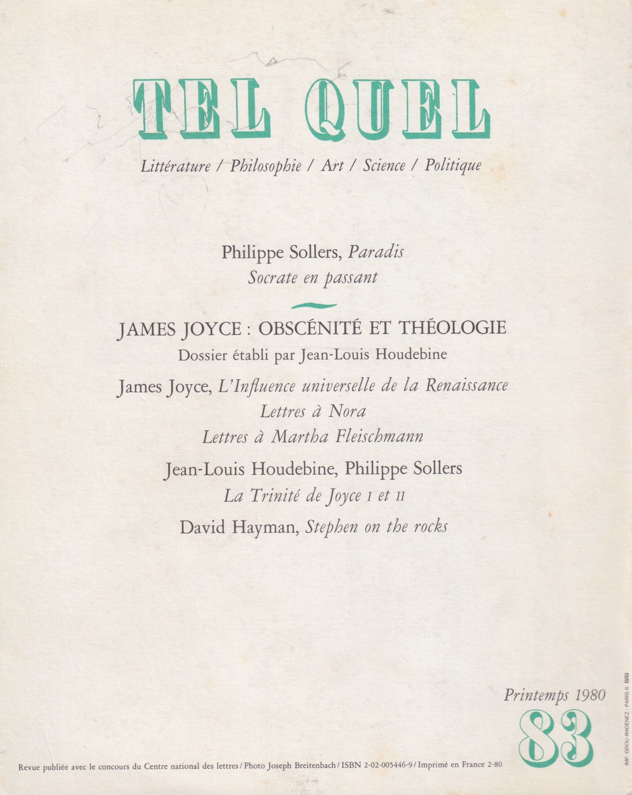 前衛文芸誌『TEL QUEL』第83号