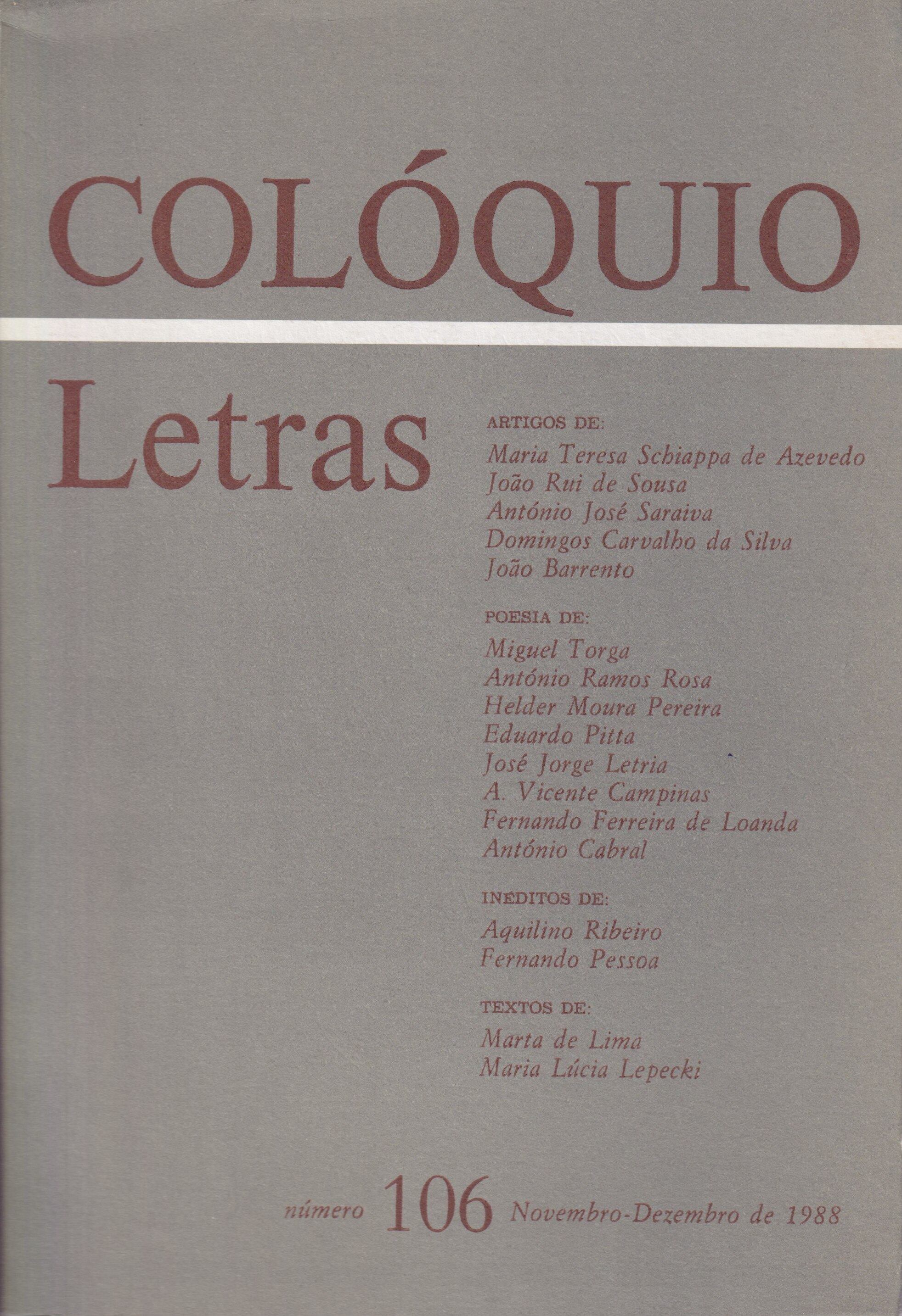 「Colóquio/Letras」第106号