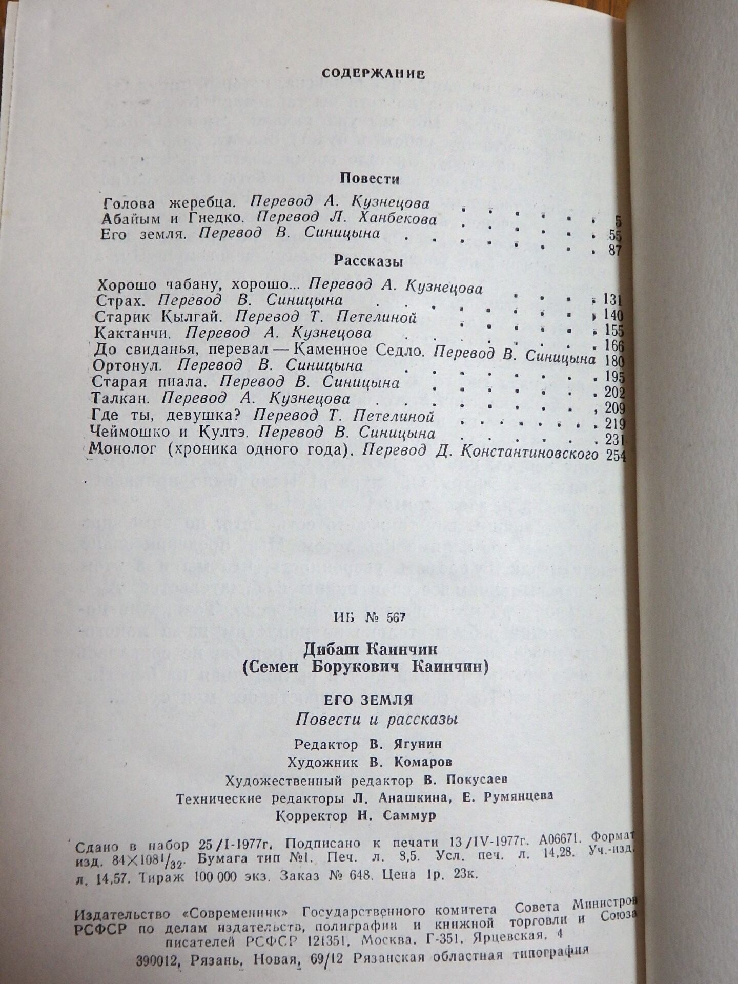 「Его земля」Дибаш Каинчин 1977年 ハードカバー 露語 薄ヤケシミ少痛